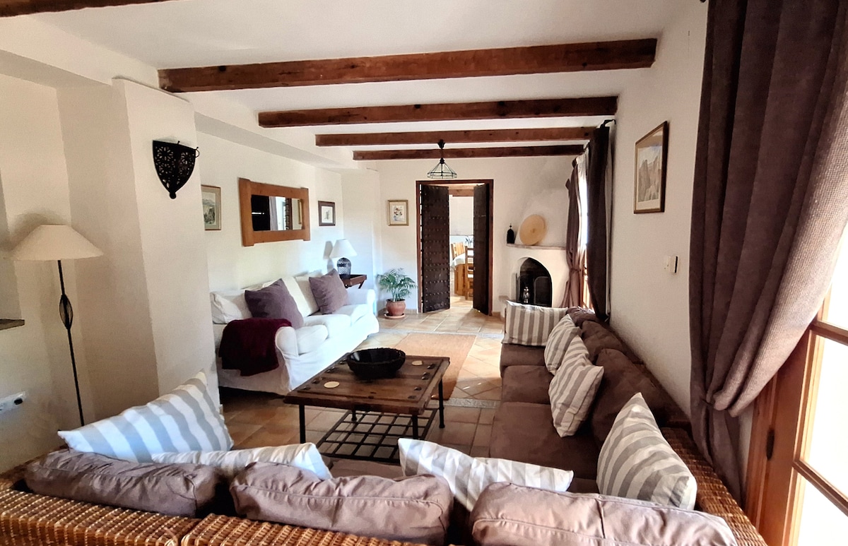 Belle maison de style andalou dans un endroit calme qui transmet la sérénité. Vue panoramique sur la campagne et la mer en arrière-plan, les jours clairs, vous pouvez même voir la côte du Maroc. Meublée très fonctionnelle avec élégance et simplicité. Le rez-de-chaussée se compose de toilettes, d'un salon et d'une cuisine ouverte avec accès au porche et au jardin avec piscine privée. 1er étage : 1 chambre en suite, 1 chambre double et 1 chambre simple qui partagent 2 salles de bains complètes. 2e étage : mansarde avec canapé-lit et toit-terrasse avec vue.