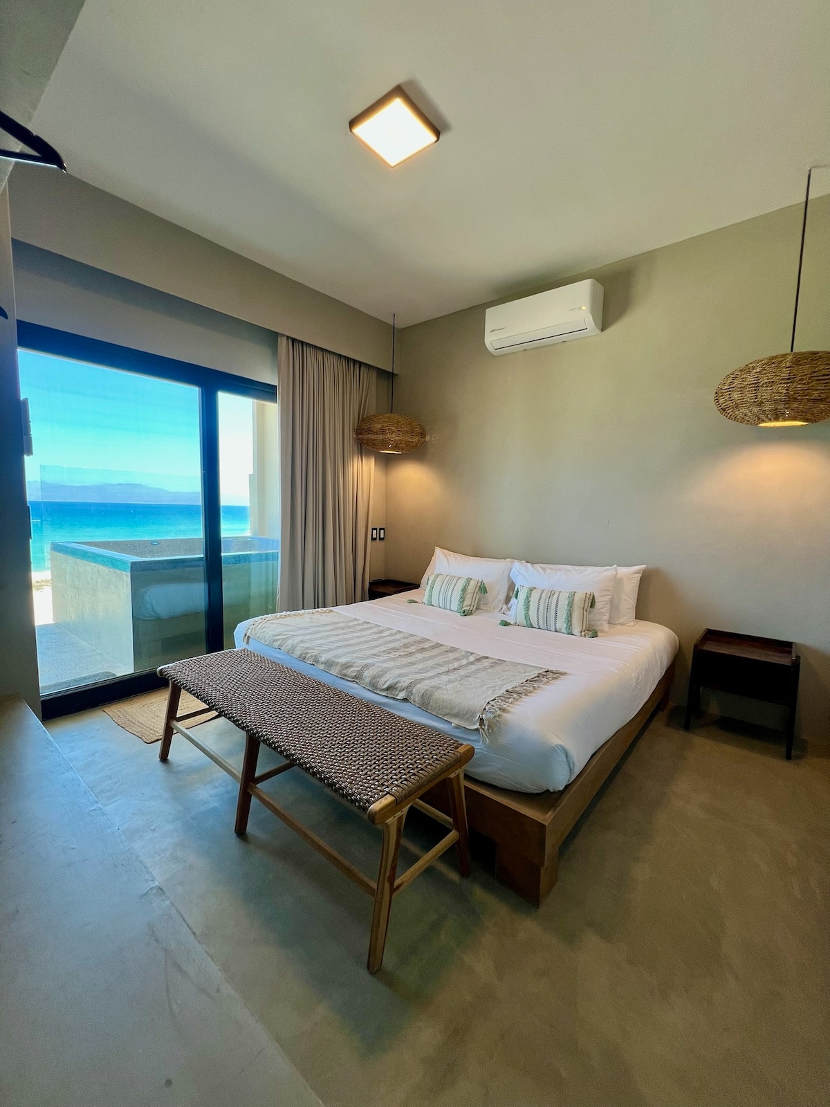 Designed for wind-chasers and peace-seekers alike, our new modern casita is your serene basecamp; Enjoy the simplicity of this quiet, centrally located lodging. This property is special because it was designed with lovers of the sea, wind, and tranquility in mind. Just a 5-minute walk from the beach , boat ramp and Playa Central, this new house combines modern comfort, reliable Starlink satellite Wi-Fi, and a relaxed atmosphere with spectacular views of the bay and the desert All property yours