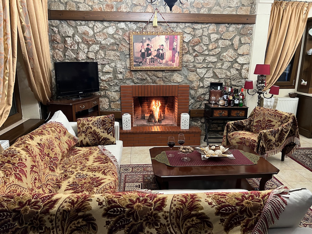 Villa confortable "The Mountain View" dans la route nationale Trikala-Ioannina. 40 min de Trikala, 25 min de Meteora Kalampaka, 30 min du fabuleux Metsovo, 55 min de Ioannina et 40min de Grevena. C'est près de la route Egnatia, 15min. L'emplacement idéal de Comfy Villa, vous offre la possibilité de visiter une grande ville tous les jours. Avec la Smart TV, nous fournissons Netflix! En décembre, vous pourrez visiter le Fantastique "Moulin des elfes" à Trikala, vous souvenir de votre enfance et passer des vacances magiques!