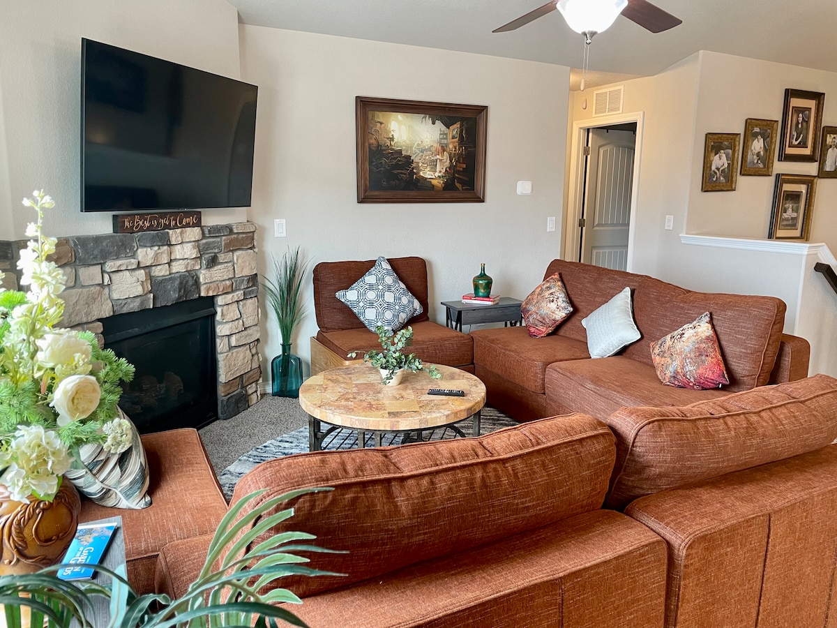 Maison spacieuse et moderne avec une charmante ambiance familiale. Profitez d'une excellente nuit de sommeil dans le lit King Sleep Number. Détendez-vous dans la baignoire de la salle de bain attenante. Préparez des repas dans notre cuisine entièrement approvisionnée où des articles de petit-déjeuner, des ingrédients de cuisson et de pâtisserie, des épices et des condiments seront fournis. Après une bonne nuit de sommeil, explorez Colorado Springs, puis détendez-vous sur notre grand patio ouvert avec un foyer. À trente minutes du centre-ville avec de superbes vues sur le quartier de Pikes Peak.
