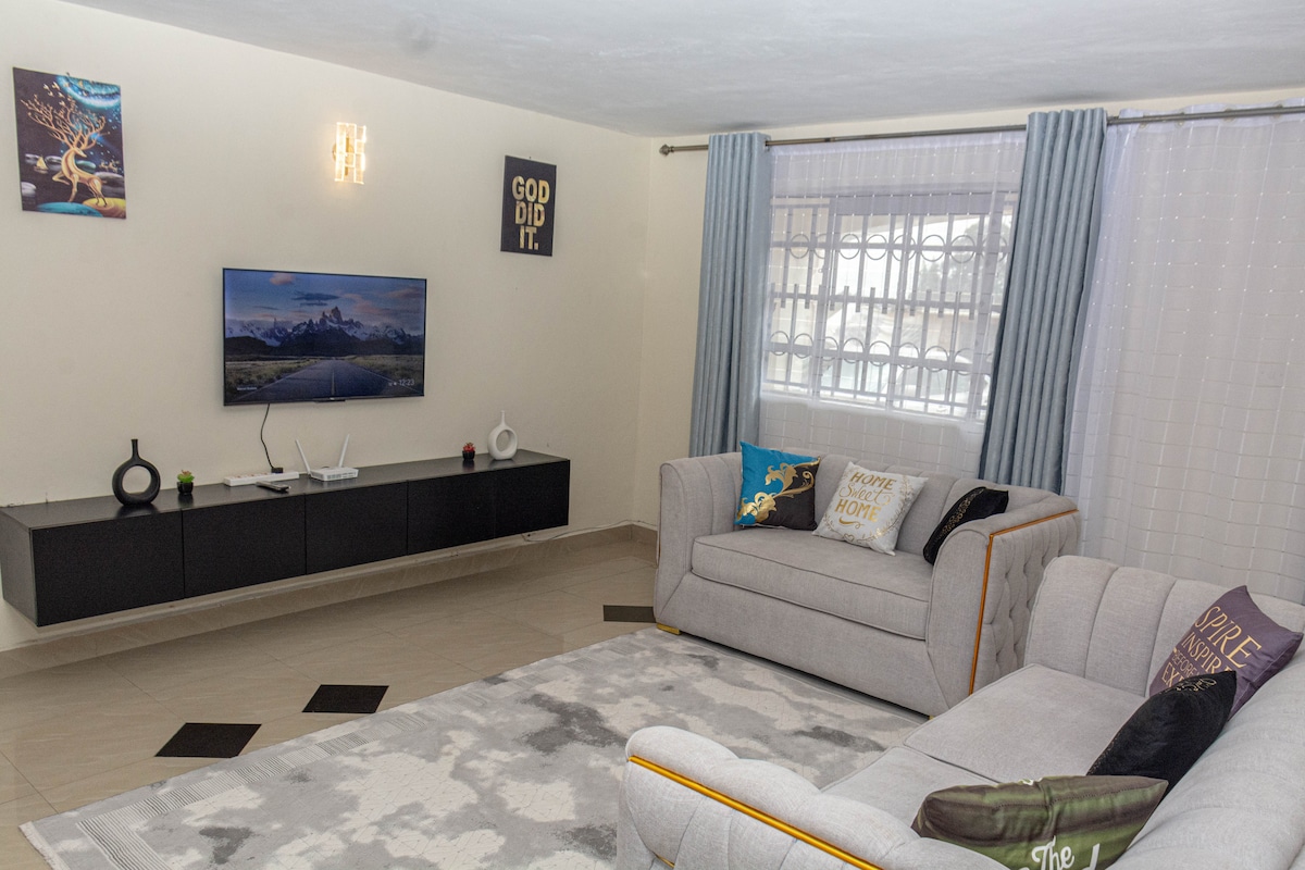 Détendez-vous dans cet espace calme et élégant. Oubliez le bruit de la ville, juste l'ambiance pure et l'ambiance. La maison est située à 200 m de la route A104 Nairobi-Eldoret et à 2 km du centre commercial Rupa qui dispose de KFC, Java, Beyond Fruits, etc. Nous livrons de la nourriture, des produits d'épicerie et des boissons au cas où vous ne voudriez pas quitter la maison. Donnez-nous simplement une liste et nous la ferons livrer à votre porte. Nous avons également un taxi sûr et une boda boda en attente que vous pouvez commander au cas où vous seriez nouveau en ville.