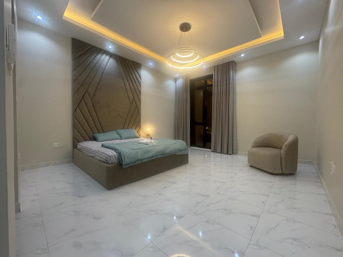 Villa familiale de 3 lits et 4 salles de bain, retraite ultime pour les familles ou les groupes à la recherche de confort, de divertissement et de détente. Situé à Ajman, à 35 minutes de l'aéroport DXB de Dubaï, à deux pas des petits magasins locaux, des bars de plage et des restaurants à quelques minutes en voiture. Toutes les chambres disposent de salles de bains privatives et de lits King Size. Salle de cinéma et aire de jeux pour enfants au rez-de-chaussée. Cuisine entièrement équipée, coin repas et salon. Piscine sur le toit, bar, barbecue et tennis de table. Air climatisé dans tout le logement