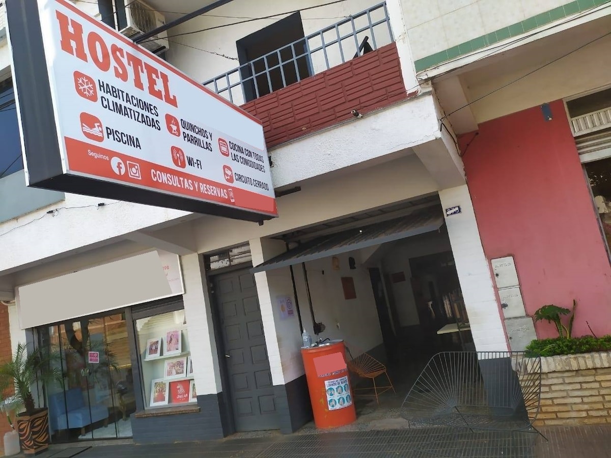 Localizada à 1 km da avenida Costanera, duas quadras de um supermercado 24 horas, 5 quadras do terminal de ônibus da cidade de Encarnación, você pode fazer tudo á pé. Comporta até 5 pessoas confortavelmente, tem vaga de estacionamento dentro do pátio fechado. Tem ar condicionado no quarto, tv a cabo, internet, frigobar, fogão para a sua comodidade.