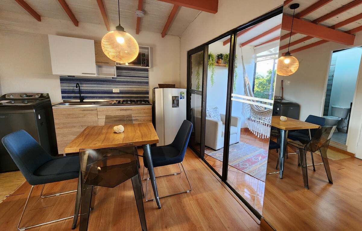 Vous serez à 4 minutes à pied de la gare Envigado, à l'extérieur de la maison, vous pouvez prendre un bus ou un vélo, ce qui vous permet d'atteindre les principaux endroits de la ville. Vous serez également à 3 minutes à pied du centre commercial VIVA et à 15 minutes en bus du parc Lleras. L'appartement dispose d'un placard, d'une smarttv, d'un bureau, d'un lit double, d'un très bon éclairage, d'une ventilation et d'un balcon.