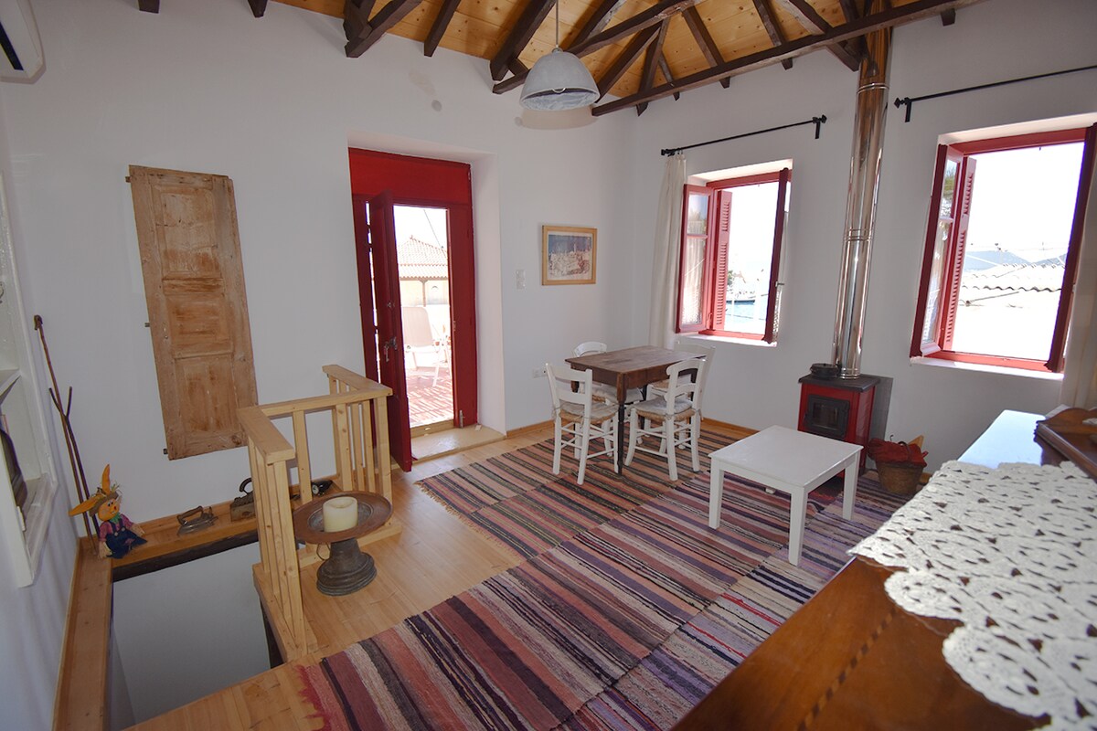La maison date des années 20 et a été récemment rénovée dans le respect de la tradition. Elle est située dans un quartier paisible en face de la mer, près de la péninsule de pins d'Ermioni et à distance de marche du centre du village (tavernes, magasins, supermarchés, vie nocturne, banques, boulangeries). Il y a plusieurs petites criques pour nager à proximité, car chaque endroit se trouve à moins de cinq minutes à pied de la maison. C'est l'endroit idéal pour des vacances paisibles et relaxantes.