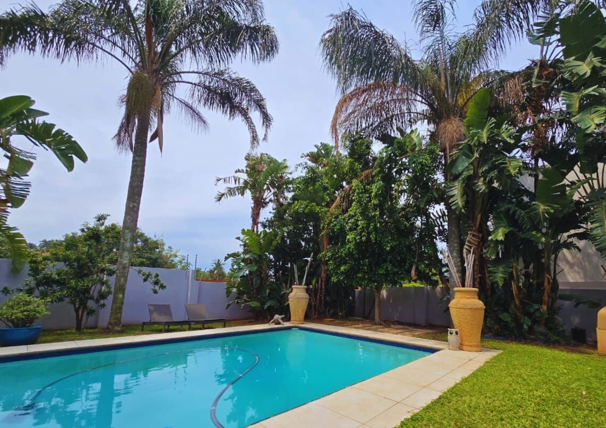 Appartement récemment rénové avec vue sur la piscine naturelle d'Umdloti, avec en plus des dauphins et des baleines (en saison). 2 chambres, 4 couchages et un canapé-lit. Camarque est adjacent à un bassin de marée naturel sûr avec une plongée avec tuba incroyable où vous verrez une variété d'espèces de poissons et d'animaux. Beaucoup de singes, de mangoustes et parfois des céphalophes parcourent la pelouse. Superbe vue depuis le stoep avec un barbecue/braai à gaz, le complexe dispose d'un espace braai extérieur et d'un espace piscine.
