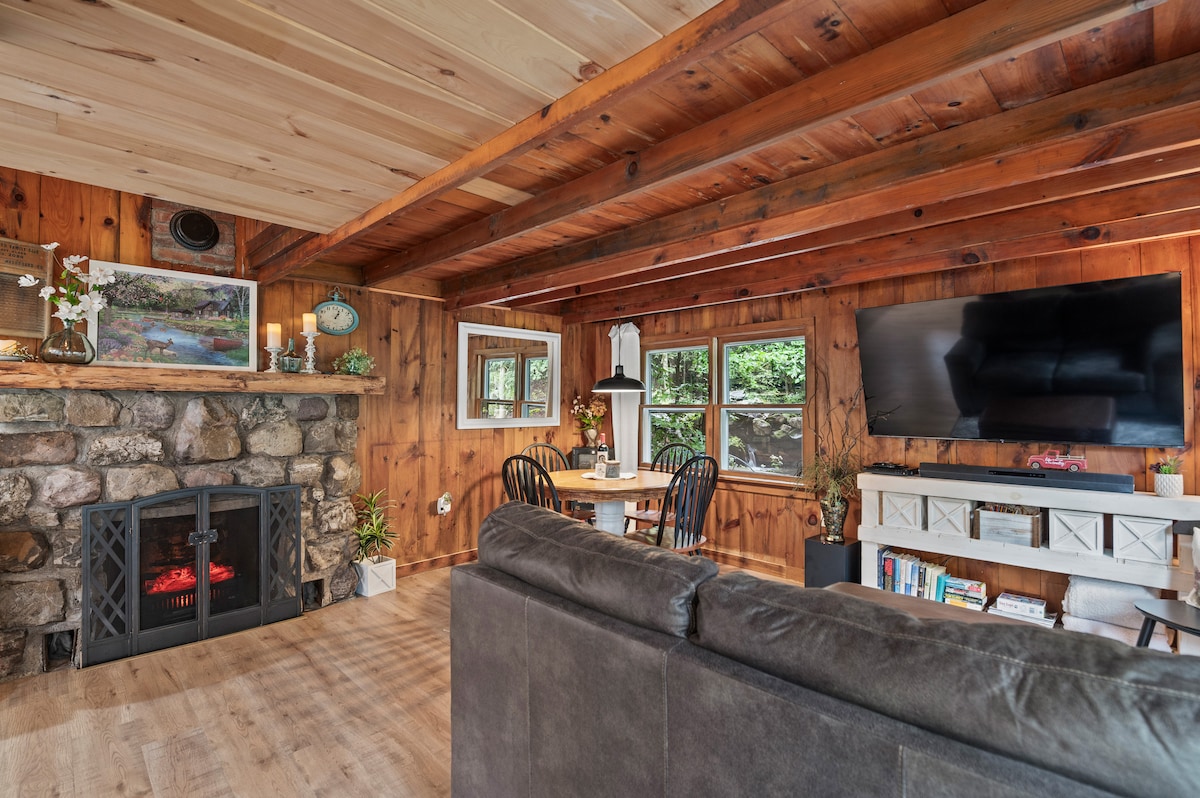 Welcome to the LOME! A one-of-a-kind log cabin nestled in the Southeast Adirondacks, between Lake Champlain & Lake George, with sweeping views of the Vermont Green Mountains. The hand-hewn beams overhead were salvaged from a 100-year-old family barn & every corner of this home has been crafted with love & intention. Whether you're here to hike, ski, spend lazy days by the lake, peep foliage, or genuinely unplug - this is the perfect retreat in one of the most beautiful spots in the Northeast