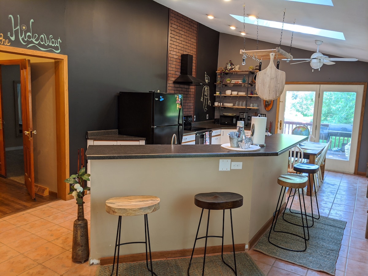 Ambiance de campagne, commodité de la ville ! Maison privée meublée avec 1 lit King Size, 1 lit Queen Size, 1 lit complet, 1 lit double, 2 salles de bains, lave-linge/sèche-linge et cuisine complète. Située sur un terrain d'un acre à quelques minutes de l'aéroport, des autoroutes 30 et 380, des restaurants, des magasins et des sentiers. À 10 min en voiture du centre-ville de Cedar Rapids, à 25 min en voiture d'Iowa City ou des colonies d'Amana. C'est propre, calme, confortable et offre la commodité de l'accès à la ville tout en offrant une retraite confortable pour un séjour paisible. Idéal pour tous les voyageurs !