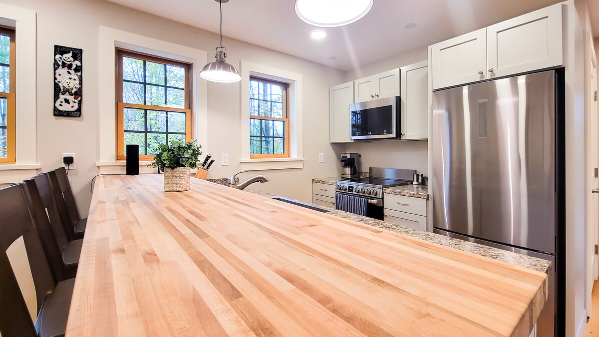 Profitez de tout ce que le Vermont a à offrir dans cet espace lumineux et aéré à quelques minutes de Burlington et des montagnes. Sur 14 acres avec un ruisseau, il se trouve à quelques pas d'un pont couvert historique et de la ville commune. Les couleurs d'automne sont à couper le souffle lorsqu'elles sont admirées depuis la terrasse de la grange, tandis que les visiteurs de printemps et d'été profitent de concerts gratuits sur la pelouse de la ville le dimanche. Les couchers de soleil spectaculaires et les montgolfières sont des vues familières. On ne peut pas faire plus typique du Vermont. *Remarque : pas de frais de ménage !