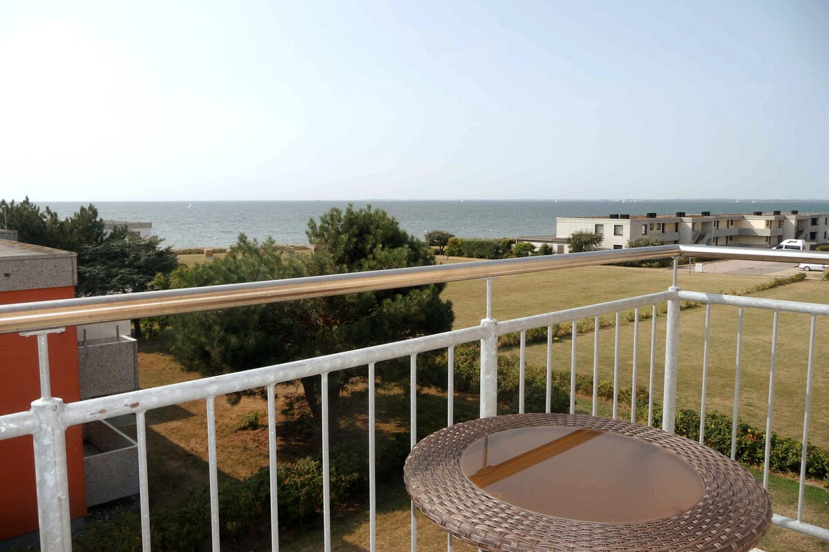 Vue sur la mer et balcon - appartement de vacances de rêve directement sur la plage L'appartement de vacances L'appartement de vacances Ostsee-Residenz à Staberdorf sur Fehmarn offre une vue fantastique sur la mer Baltique. C'est le refuge idéal pour les couples et les voyageurs en solo pour des vacances reposantes directement sur la plage. Il dispose d'une cuisine entièrement équipée, d'un canapé confortable et d'un lit boxspring de haute qualité (160x200 cm). La salle de bain est équipée d'une spacieuse Rainshower et d'un chauffe-serviettes.