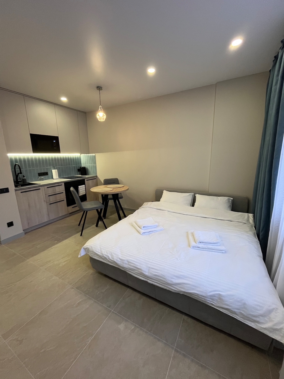 Studio confortable et récemment rénové, qui n'est pas partagé avec les propriétaires de la maison. Situé à deux pas du centre ville. Il a tout ce qu'il faut pour un séjour et une vie confortables. À quoi se trouve-t-il à proximité ? - Supermarché (marché ouvert 24h/24) et pharmacie - 3 minutes à pied - Agence de PrivatBank - 7 minutes - Central City Bazaar - 10 minutes - Centre-ville - 20 minutes - Hôpital régional pour enfants - 10 minutes Parking gratuit devant la maison.