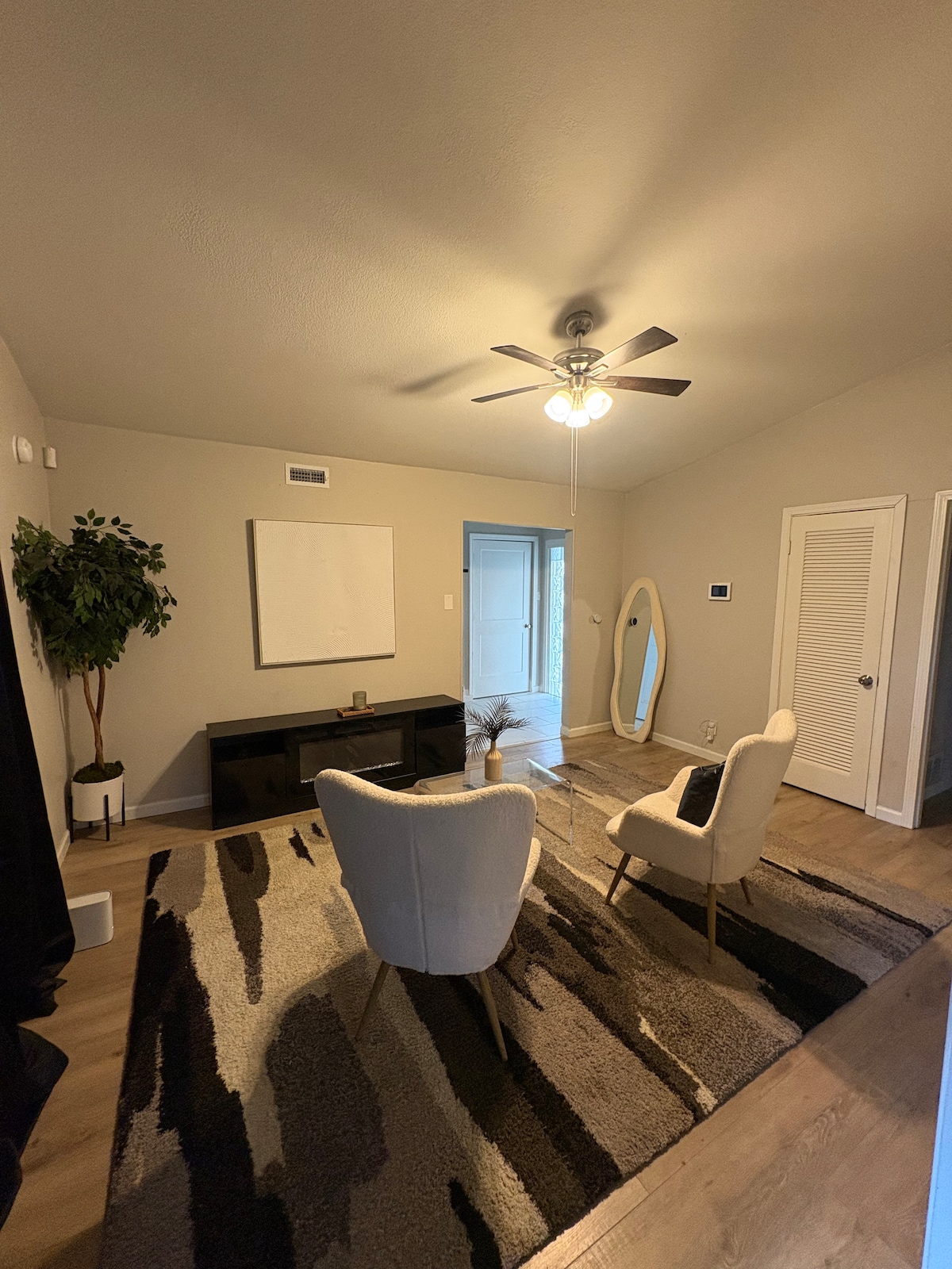 Fern Cottage is on rear of our property with private entrance as well as its own outdoor spaces which include seating, fire pit and lots of shade, front entrance has porch with swing. It is fully furnished There is an under counter fridge in the kitchen and full size fridge located outside your bedroom door in garage. Off street parking provided. NO smoking unit. No exceptions. No more than 2 pets allowed NO AGGRESSIVE PETS. There is a $25 pet fee please be courteous and pay when reserving
