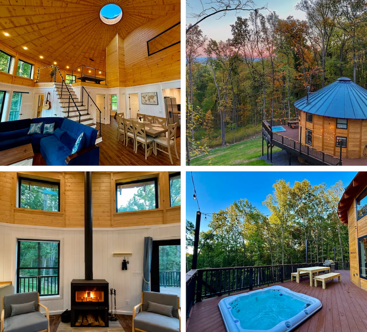 Évadez-vous dans la yourte de Front Royal, en Virginie, près du parc national de Shenandoah. Une nouvelle retraite luxueuse au cœur des montagnes Blue Ridge à couper le souffle située à 1 300 pieds ! L'exceptionnelle Yourte Royale Avant allie l'élégance moderne du glamping au confort de haut niveau, offrant une escapade inoubliable. Profitez d'une yourte moderne ultramoderne, avec bain à remous encastré, terrasse à 360° avec vue imprenable, foyer, station de recharge EV, poêle à bois, télévision HD 77", PS5, table de billard, livres, jeux de société et plus encore !