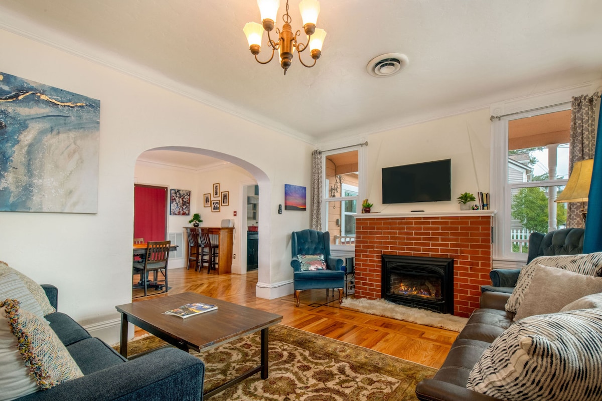 Bienvenue dans un sanctuaire confortable et rajeunissant à un pâté de maisons de Main Street dans le centre-ville de Grass Valley. Vous avez toute la maison principale. Cela comprend 3 chambres, un salon spacieux avec cheminée, une salle à manger avec grande table familiale, une cuisine entièrement approvisionnée, 2 salles de bain complètes, une buanderie et un jacuzzi partagé. De la maison, promenez-vous facilement dans le centre-ville de Grass Valley pour profiter de restaurants, de boutiques et de spectacles uniques. Rentrez chez vous dans votre maison historique privée de 150 ans, fraîchement rénovée.