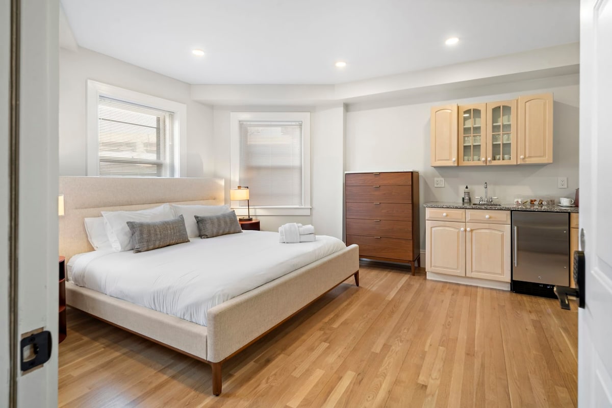 Studio élégant à quelques minutes du centre-ville de Boston ! Séjournez à seulement 5 minutes du métro et à 10 minutes de Harvard et du Boston College. Ce studio moderne dispose d'une connexion Wi-Fi ultra-rapide, d'une télévision Roku de 65", d'un lit queen confortable, d'une cuisine complète et d'un lave-linge/sèche-linge. Profitez d'équipements haut de gamme, comme une salle de sport, des salons et des espaces de coworking. Idéal pour les infirmières, les couples et les voyageurs d'affaires. Accédez à pied aux meilleurs restaurants, bars, magasins et Whole Foods. Une place de stationnement est disponible sur demande !