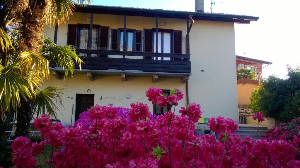 Savor a glass of wine on the cozy rooftop terrace, while enjoying a lake breeze and panoramic views. This rustic second-story apartment features all-natural building materials, a closed bedroom with direct access to the bathroom, a fully equipped kitchen, a loft space with futon bed and terrace access. Perfect for one couple or for a family with children. The 2 people who sleep on the bedroom/mezzanine have to accross the main bedroom to go to the bathroom! Ce magnifique appartement est situé au premier étage de La Maisonnette , et donc s'appelle "La Maisonnette en Haut". Il est composé d'un espace séjour avec canapé confortable et fauteuil pour regarder la TV satellite ou naviguer sur internet (wifi), d'une table et quatre chaises pour vos repas, et d'une cuisine complète (cuisson gaz, frigo, lave-vaisselle, four, etc.). De ce premier espace , vous pourrez profiter de la vue sur le Lac à travers deux lumineuses fenêtres. Du salon vous accédez à la chaleureuse chambre fermée et équipée d'un beau dressing. De cette chambre, vous aurez accès à la salle de bain complète (douche avec double sortie d'eau!, wc, bidet et lavabo inséré dans une pierre). En montant à l'étage par un escalier au-dessus de la cuisine, vous trouverez un espace mezzanine avec un deuxième lit double, un coin bureau sous fenêtre lucarne (vue sur les collines), et l'accès à la magnifique terrasse dans le toit... Vue panoramique sur le Lac (et Isola Madre) et relax garanti en prenant un bain de soleil ou en sirotant un cocktail !!! Pour votre bien-être et dans le souci de respecter le côté ancien de la maisonnette, nous avons opté pour des matériaux naturels durant la rénovation, et donc vous serez entourés de pierre et de bois! Chaque détail de l'ameublement a été aussi pensé pour votre confort (meubles, luminaires, tissus, décoration...) L'accès à La Maisonnette est indépendant par une petite rue à pied, ou par le jardin de notre villa où vous pourrez garer votre voiture gratuitement. La Maisonnette est une dépendance de la maison où je vis à l'année. L'accès à La Maisonnette est indépendant par une petite rue à pied, ou par le jardin de notre villa où vous pourrez garer votre voiture gratuitement. Je suis à votre disposition pour répondre à toutes vos éventuelles demandes, et vous conseiller au mieux pour le bon déroulement de votre séjour en famille à Stresa et ses environs (activités touristiques, sportives, choix d'un restaurant, transports, etc...) The hamlet of Binda is located just above Stresa. It is made up of antique village homes and narrow streets . You can walk down the hill to the lake and the town of Stresa in 10-15 minutes. La Maisonnette se situe à 5 minutes de la sortie d'autoroute "Carpugnino" (A26), et à 5 minutes en voiture de la gare ferroviaire du centre de Stresa (trains pour Lausanne, Bâle, Genève, Milan centre). Service de lavanderie payant et sur demande.