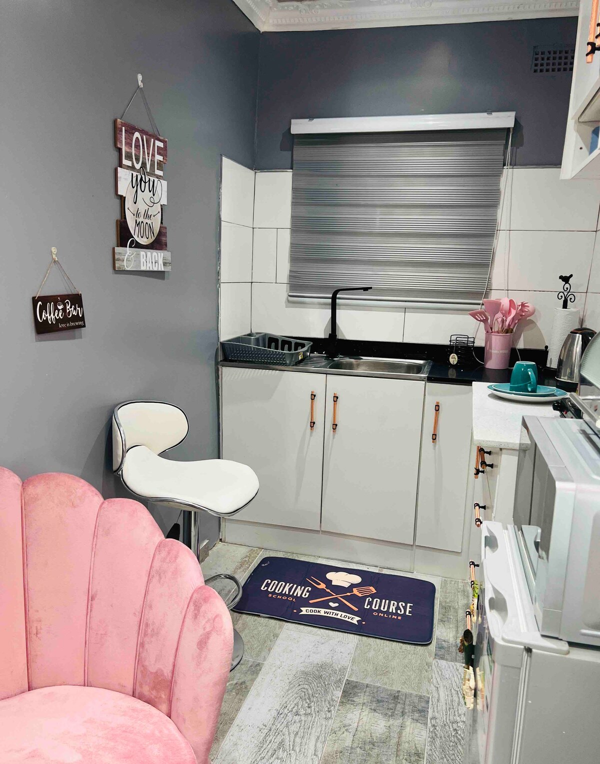 A small funky creative little home designed to be colorful and stylish to make you feel at home, a home away from home.The Tiny home is located about 9.3 km from Bulawayo CBD using Cecil road The home provides guests with WiFi which is now STARLINK😍, a garden, with road runner ( chickens) and pets free parking, kitchenette including a stove , fridge and microwave. The scenery is to make you comfortable as our guest.