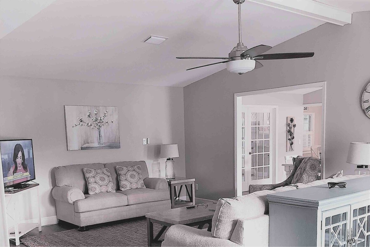 Bienvenue au chalet des écrivains. Profitez de la tranquillité de ce chalet au bord du lac situé à proximité de tout ce que Palm Coast a à offrir. À proximité de la plage, des terrains de golf et à distance de marche des restaurants, des cafés et des épiceries. Regardez les tortues s'aligner sur la bûche ; attrapez quelques poissons ; lisez un livre ou mieux encore écrivez votre livre au bureau dans le patio arrière fermé. Promenez-vous dans le quartier jusqu'à Holland Park pour profiter de la pataugeoire gratuite, de l'aire de jeux incroyable et des installations de loisirs.