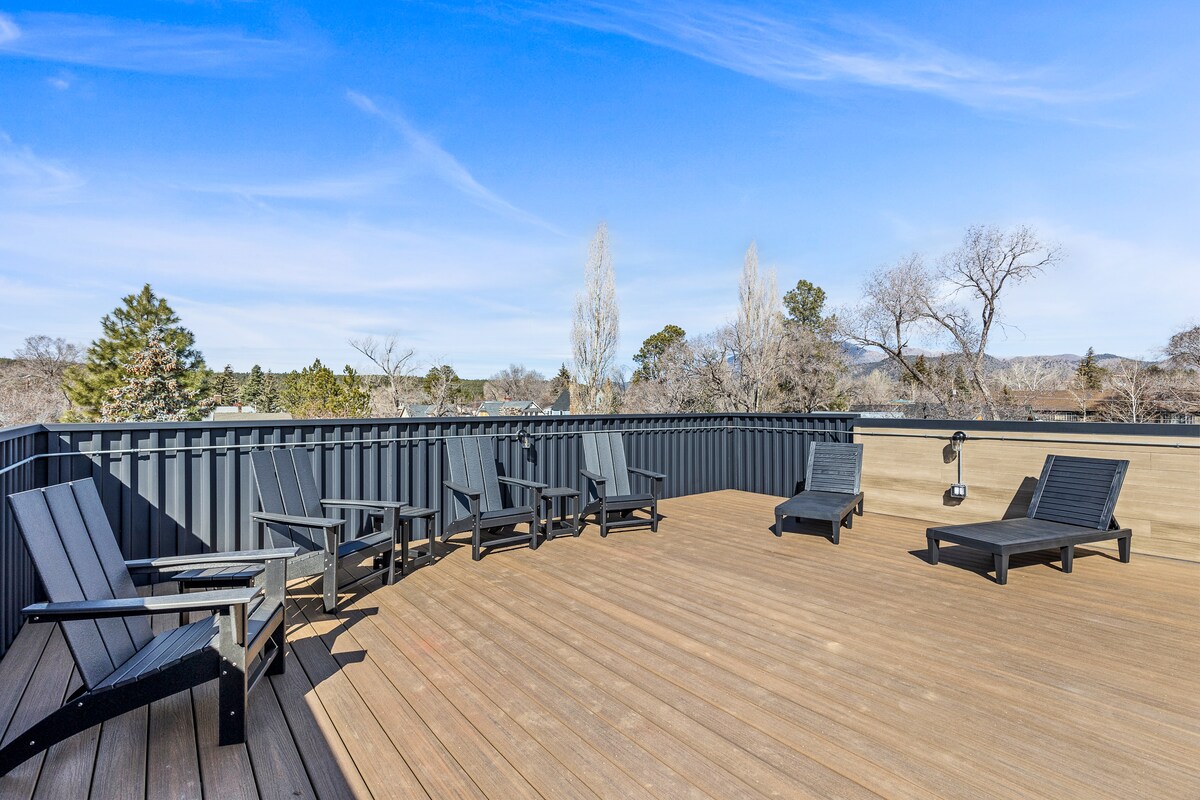As 4th generation natives of Flagstaff, we are proud to offer this space. New construction with a modern but comfortable feel. Brand new HOT-TUB! Full kitchen which includes:stove/oven, refrigerator (with ice maker), microwave, dishwasher, pots & pans, dishes, silverware, blender & toaster. Coffee & tea provided. Washer & dryer in unit. One Bedroom with a king size bed and closet space. One full bathroom. Sofa bed in the living room area for extra guests. Just a note, we do not allow pets