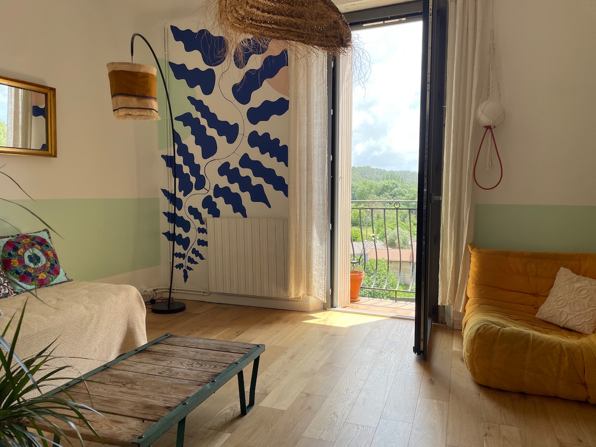 Magnifique dépendance de charme, avec jardin et jacuzzi privatifs au cœur de la Provence, vue sur champs d'oliviers et montagnes, à 15mn des gorges du verdon. Venez découvrir ce petit coin de paradis paisible, entre mer et montagnes, situé au cœur des villages perchés, des marchés provençaux, de ses cascades, vignes et champs de lavandes. Idéal pour un couple ou parents avec jeunes enfants.