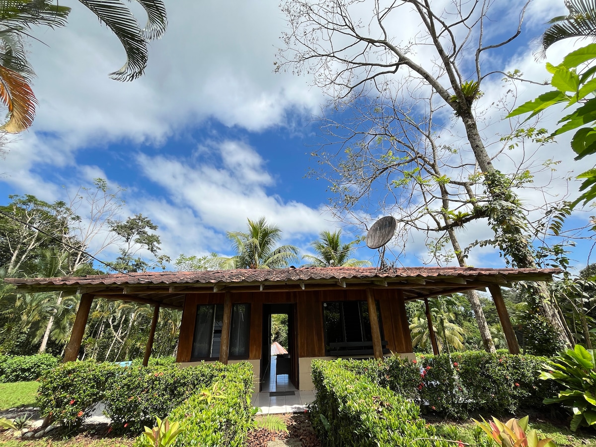 Profitez de notre bungalow privé et confortable, parfait pour vous détendre entouré de nature. Entièrement équipé avec CLIMATISATION, ventilateur de plafond, salle de bain privée, ustensiles de cuisine, PARKING et WI-FI. Situé à seulement 12 minutes en voiture du centre-ville de La Fortuna, la propriété offre un lac, un accès à la rivière Burro et des vues superbes sur le volcan Arenal par temps clair. Un refuge idéal pour se reconnecter avec la tranquillité !