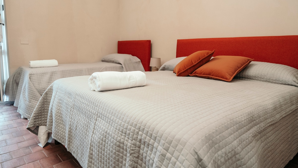 Cette chambre Triple est parfaitement conçue pour 3 personnes ou familles pour profiter de leur séjour près des belles plages de Giardini Naxos. Il dispose d'un confortable lit matrimonial et d'un lit simple, d'une salle de bain privée avec douche et d'un balcon offrant une vue partielle sur la mer. Il est situé au cœur de Giardini Naxos, la première colonie grecque de Sicile, à seulement 30 mètres du front de mer et de la plage et à seulement 20 mètres de l'arrêt d'autobus.