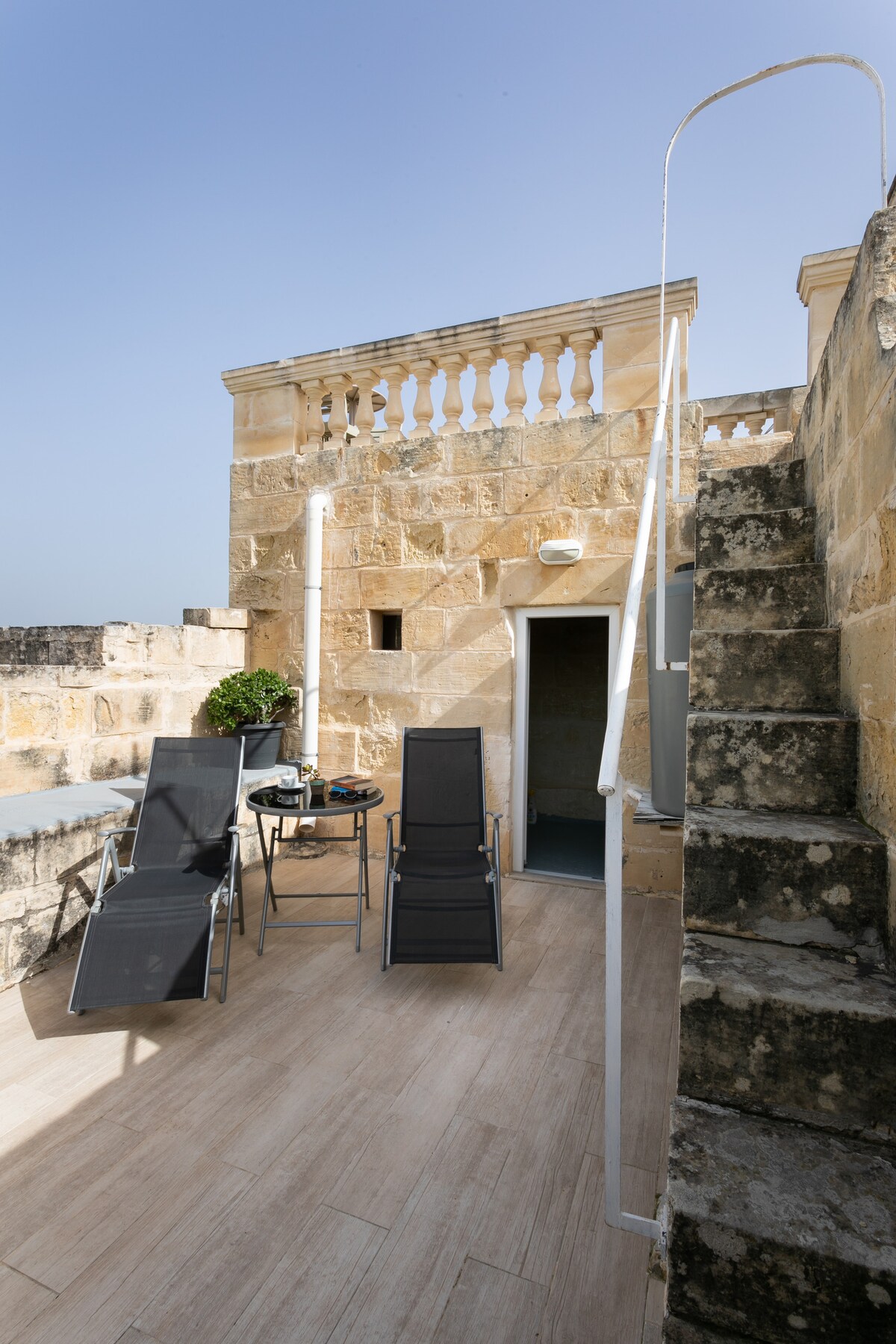 Située dans un bâtiment en pierre remarquablement rénové, cette suite regorge de sophistication grâce à un mobilier royal, une décoration éclatante et des sols en marbre. La suite Ivory 3 est située au 2e étage de la maison de ville et bénéficie de beaucoup de lumière naturelle. Cette suite dispose d'une terrasse privée sur le toit avec une vue fantastique. Récemment restaurée, la suite dispose de hauts plafonds avec poutres en bois et dalles de maçonnerie traditionnelles. L'entrée principale de La Valette et le terminus principal des bus de Malte sont à 5 minutes à pied.
