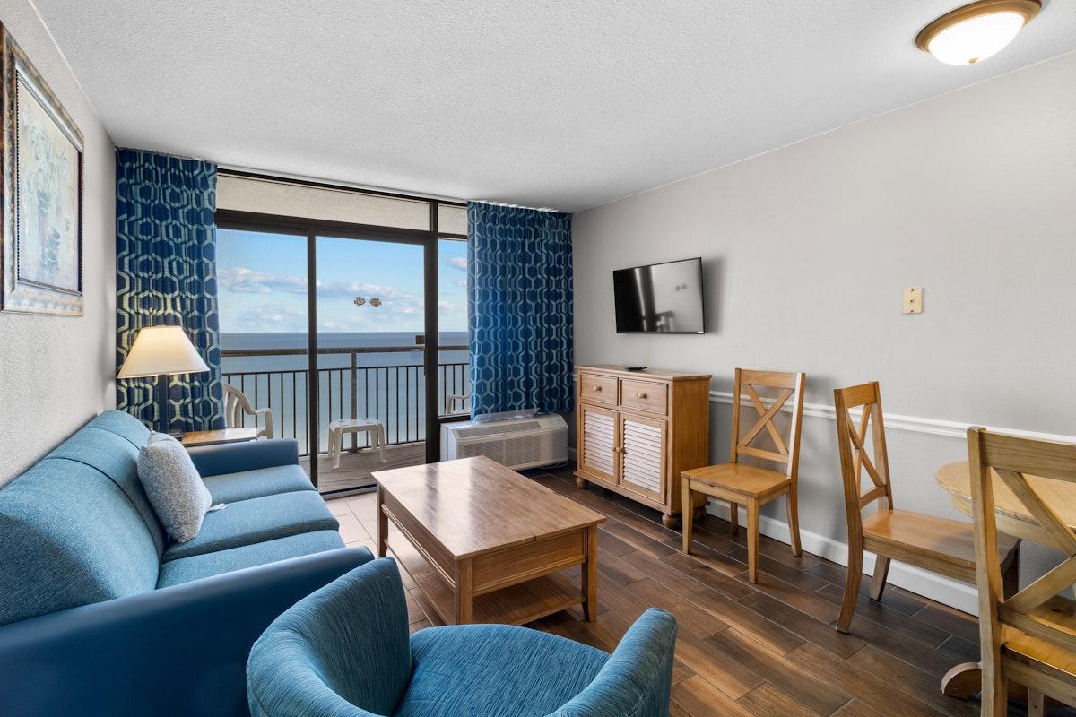 Relax with sweeping ocean views and an easygoing space designed to help you unwind. Enjoy your private balcony, simple comforts, and Seawatch’s pools just steps away. • 🌊 Oceanfront views that instantly slow you down • 🌅 Private balcony for morning coffee and quiet evenings • 🛏 Comfortable king bed with soft linens for restful, uninterrupted sleep • 🛋 Relaxed living space that feels easy, open, and uncluttered • 🍳 Fully equipped kitchen for simple meals and stress-free mornings • 📺 Smart
