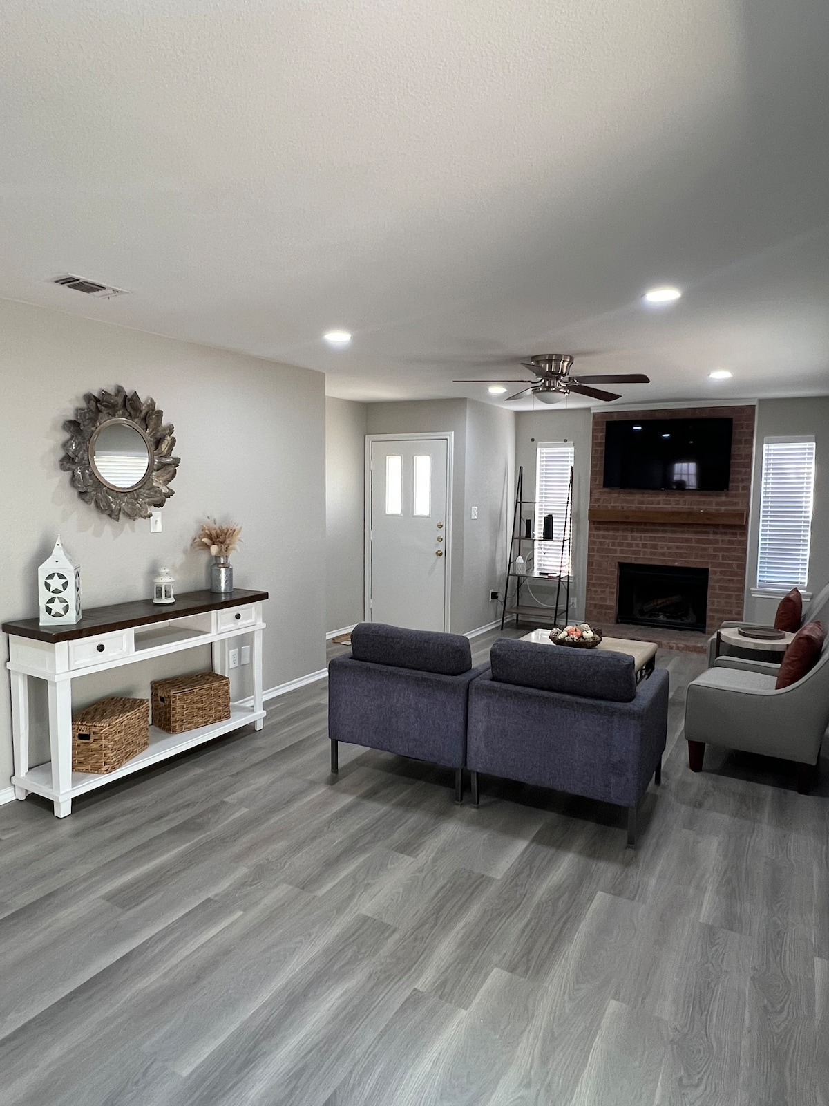 Détendez-vous dans ce logement calme et récemment rénové entouré d'hectares de beaux chênes. Profitez de l'oasis de la cour arrière et faites un plongeon dans la piscine ou détendez-vous dans le jacuzzi. Vous pourrez également profiter d'un bon barbecue dans la cabane extérieure équipée d'un gril Blackstone, d'un réfrigérateur pleine grandeur et d'une télévision extérieure. C'est aussi l'endroit idéal pour profiter d'une escapade paisible ou rester à l'intérieur et regarder tous vos films et émissions préférés. Ce coin de paradis est l'escapade tranquille idéale pour se détendre et se ressourcer.