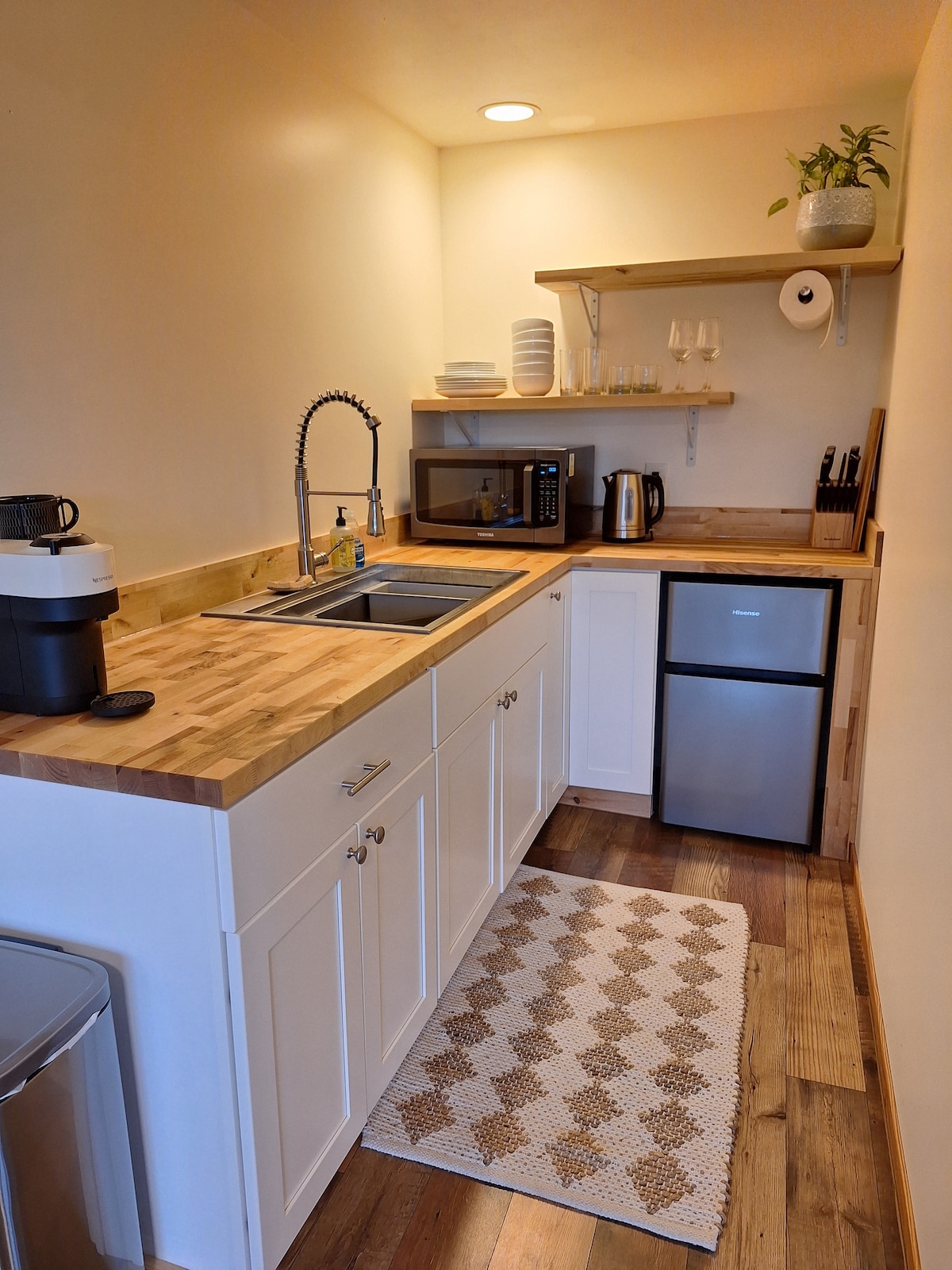 Profitez de cette belle maison d'hôtes verte à quelques minutes de Cornell U, (5 min) et du centre-ville d'Ithaca (10 min). CNN a classé Ithaca comme la ville numéro 1 à visiter. À quelques minutes en voiture de la station de ski Greek Peak, ce chalet d'une chambre récemment construit dispose d'une entrée séparée, d'une terrasse, de sols en bambou vert, du chauffage électrique solaire et de la climatisation. Il est entouré de 22 acres de belles forêts et de pelouses vallonnées. À l'intérieur, profitez du plan d'étage ouvert, y compris une cuisine avec comptoir en quartz/verre recyclé et une salle de bain carrelée en céramique avec douche à effet pluie.