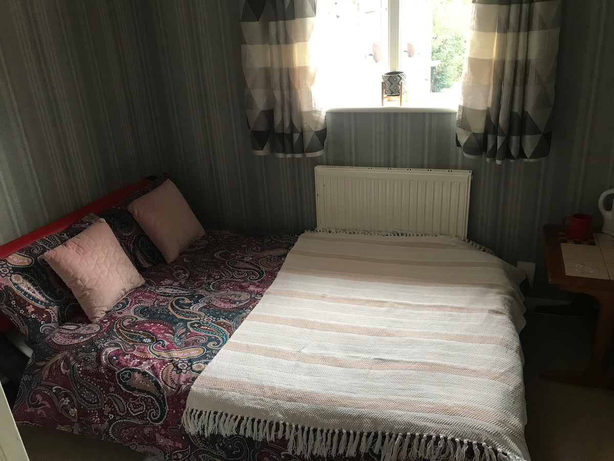 Maple House Lodge is a 1st floor guest annex, accessed via an external staircase. Located in a quiet location on the edge of the village, with rural views and comprising an open plan sitting/dining area, with TV and a well equipped kitchen with hob, oven, sink, fridge, and cooking utensils for our self catering guests. The bedroom has a super king size bed, dressing table, chest of drawers and hanging rail and en-suite shower. Parking on site Guests are welcome to use our Gym