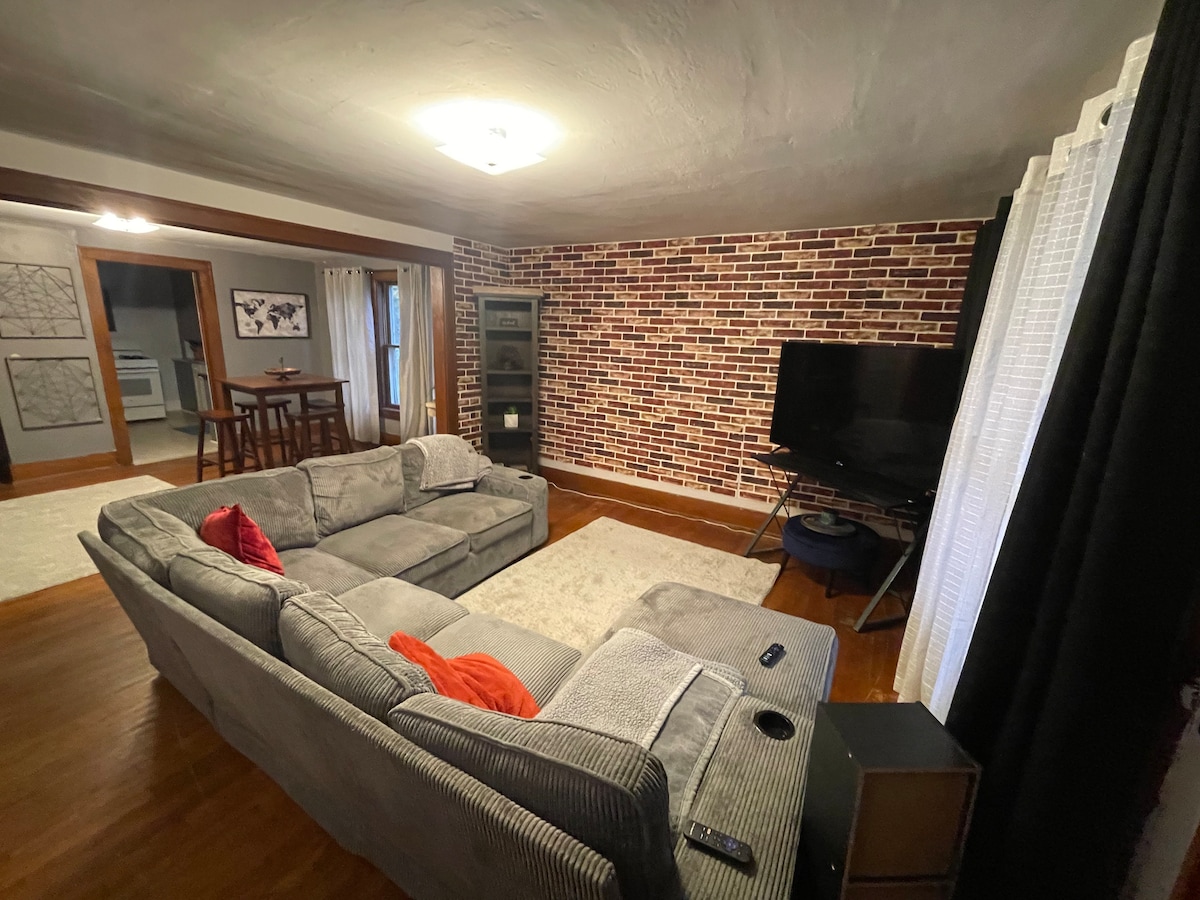 Charmante maison de 2 chambres/1 salle de bain qui a été entièrement rénovée. Cuisine neuve, appareils électroménagers, sols, meubles, et plus encore! La maison dispose d'une cuisine-séjour ouverte, de grandes chambres, d'une immense terrasse avec table à manger et de sièges supplémentaires. Il y a un lit simple pliant supplémentaire si nécessaire dans le placard MBR. Barbecue au gaz. Cour arrière de près de 1/2 acre. Les animaux de compagnie qui se comportent bien sont les bienvenus, tout comme les enfants.
