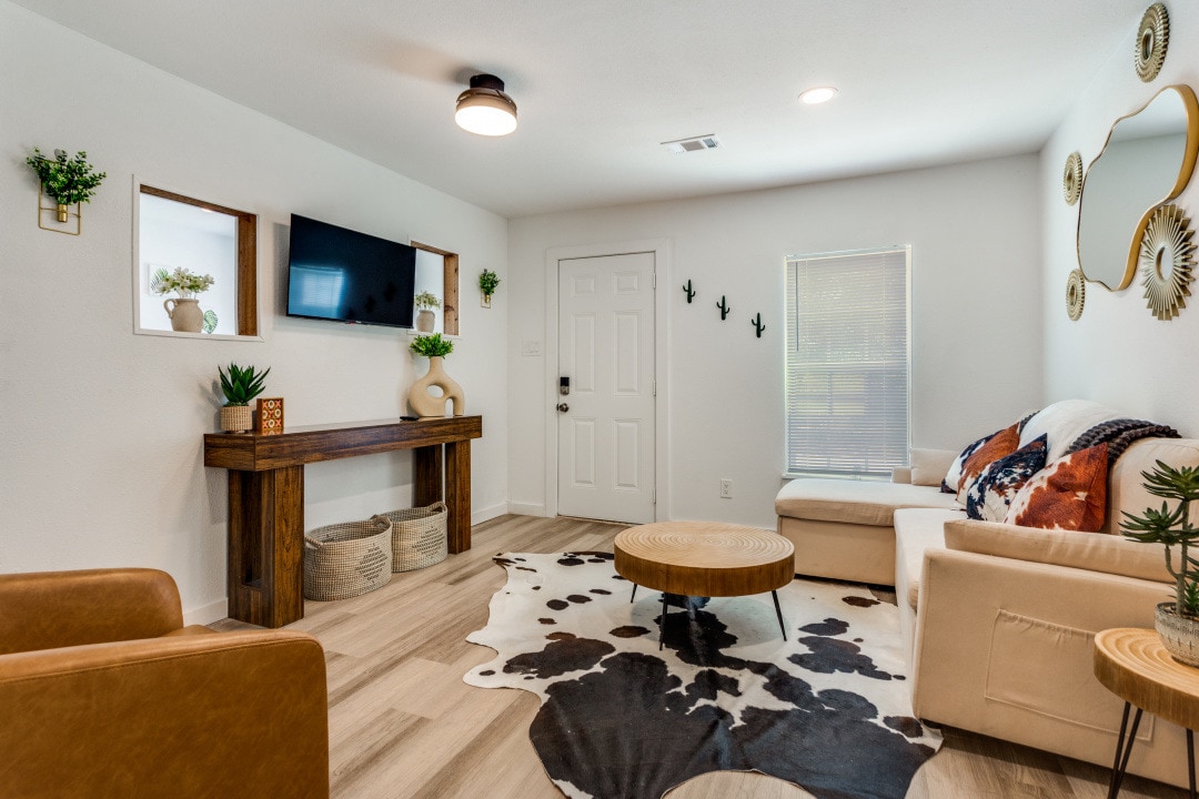 Détendez-vous dans ce logement unique et central. Ce bungalow des années 1920 entièrement rénové a du charme avec tous les équipements modernes. Détendez-vous à la lueur du brasero du patio. Créez un chef-d'œuvre dans la cuisine avec une cuisinière à induction moderne, des ustensiles de cuisine haut de gamme et un tiroir à épices bien approvisionné. Blottissez-vous devant vos films préférés avec la télévision de la chambre. Détendez-vous dans la douche à effet cascade ou dans la baignoire. Jouez dans le centre-ville de Ft Worth (10 min), ou au Stockyards/Cowboys Stadium/Six Flags/Texas Ranger's Ballpark (20 min).