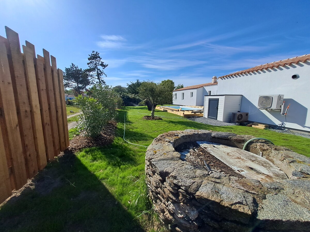 ENVIE D'EVASION ❤️ DE DÉCOUVERTE, D'AVENTURE... j'ai quelque chose pour vous .... Suivez moi ..... 👉Venez découvrir cette magnifique île sur la côte Atlantique, qui saura vous séduire par ces nombreuses balades et criques à découvrir. 👉Maison 150 m2 au calme d'une impasse -5 ch lits doubles -2 salles de bains+un coin lavabo -Piscine extérieure chauffée mai à oct.selon la météo -ter de boules 👉ll pleut? pas de panique palet et fléchette a l'abri vous y attend et de nombreux jeux.