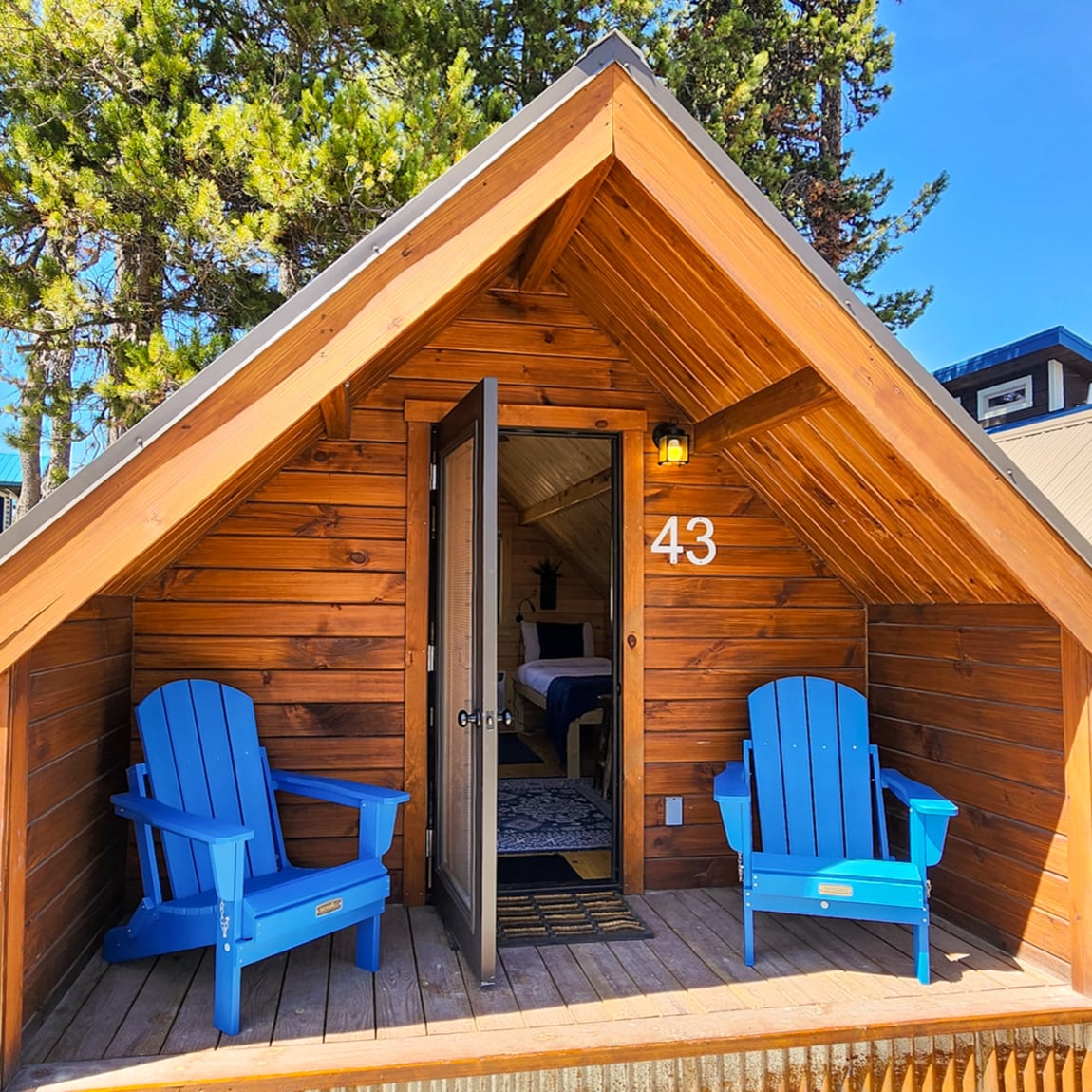 Évadez-vous dans la nature dans ce chalet en pin confortable en forme de A, une retraite abordable pour 2 adultes et 1 enfant. Comprend un lit double, un lit simple, un mini-réfrigérateur, un micro-ondes, une smart TV 32", la climatisation, le chauffage et le Wi-Fi. Important : il s'agit d'une cabine sèche sans eau courante ni salle de bain à l'intérieur. Les voyageurs ont accès à des toilettes privées et verrouillables à seulement 60 mètres, avec des douches carrelées, des toilettes et des lavabos. Une station de remplissage d'eau est disponible dans le restaurant pour remplir les bouteilles.