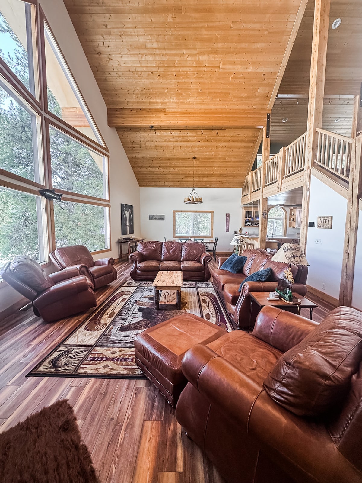 Détendez-vous dans ce logement calme, moderne et élégant. La maison dispose d'une cheminée spectaculaire du sol au plafond pour ces soirées fraîches en montagne. Vous apprécierez la vue imprenable sur la chaîne de montagnes Teton par les 2 portes vitrées coulissantes. Le séjour dispose de 2 fauteuils inclinables confortables et d'un canapé-lit pour se détendre et regarder la télévision. Belle cuisine ouverte et salle à manger pour cuisiner. La chambre principale et la deuxième chambre disposent d'un lit Queen Size et le séjour dispose d'un canapé-lit.
