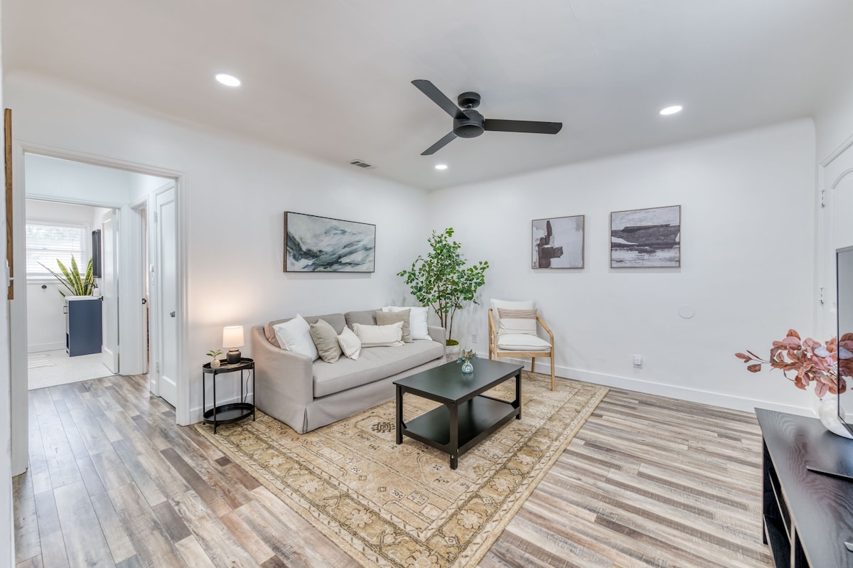 Nichée dans un quartier résidentiel en pleine croissance, cette charmante unité secondaire offre une retraite douillette et confortable. Conçu dans un souci de commodité, c'est un espace idéal pour des séjours courts et prolongés. Profitez d'un aménagement bien pensé, d'une connexion Wi-Fi haut débit pour le travail ou les loisirs et d'un accès facile aux principales attractions de Fresno. - À 10 minutes de 2 parcs aquatiques - Accès rapide à l'autoroute 41 vers Shaver Lake, Yosemite ou Sequoia ; - À quelques minutes du centre commercial Sierra Vista et de E Olive Ave - L'aéroport de Fresno est à 8 minutes.