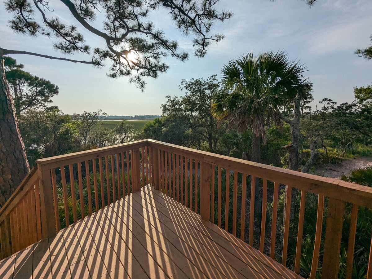 Detox You'll love this unique and romantic escape. Architectual design allows you to fully take in the view of the lowcountry marsh. The backdrop of the bed allows you to fall asleep to the majestic starry filled night sky! Soak your cares away with a bath that will surely relax and unwind you. The background is breathtaking! The outside shower allows you to take in the scenery while enjoying a hot shower. This is an "unplug" listing, no tv or internet access. Hunting Island Beach Pass included.