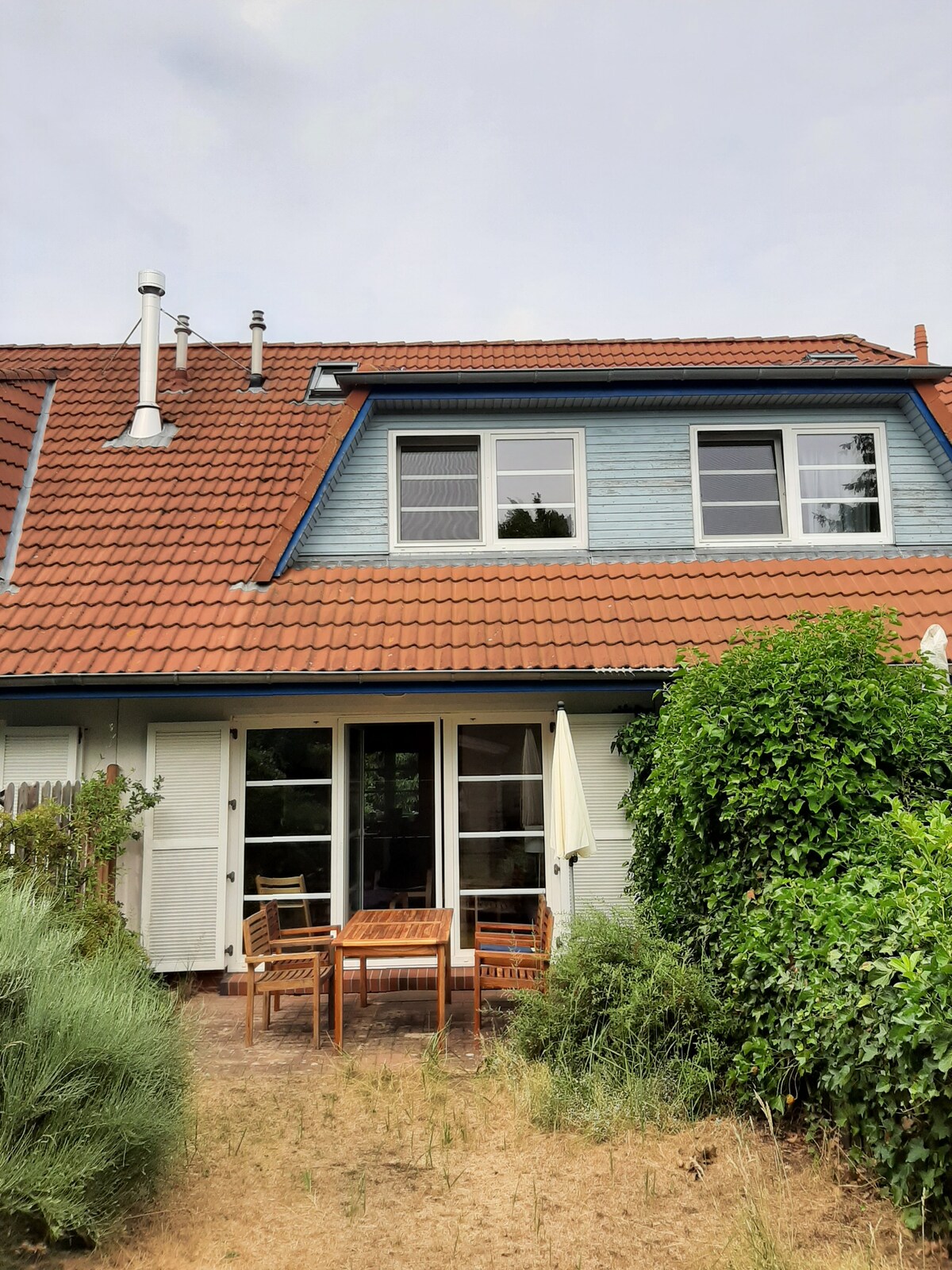 Bienvenue dans notre appartement Haasboo au 1er étage avec terrasse privée sur le toit, vue sur Bodden et garantie coucher de soleil. Chambre séparée pour 3 personnes, salon avec kitchenette entièrement équipée, salle de douche. En tant que 2ème salon, la salle de groupe d'environ 70 m² au rez-de-chaussée (ici vous pouvez rencontrer d'autres clients), vous attend avec impatience la télévision, la radio Internet, le lecteur DVD avec 60 films, la Playstation 3, le baby-foot, les fléchettes, le sauna à pièces adjacent avec douche et WC.