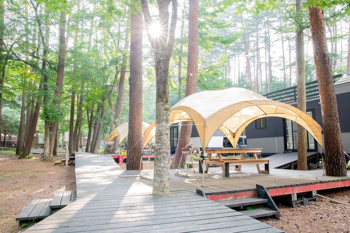 Le dôme de glamping ANribunal-Necoana est une installation de glamping de haute qualité avec une vue imprenable sur le mont Fuji qui a été récemment ouverte en juillet 2022. Avec un diamètre de 6 m, une hauteur de 4,3 m et une superficie de 34 mètres carrés, vous pourrez profiter de vacances de luxe avec un intérieur luxueux dans un espace assez grand en toute saison. À l'extérieur du dôme, il y a un balcon en bois avec un abri contre la pluie. Veuillez profiter du bon barbecue avec un poêle à gaz. De plus, vous pourrez également profiter du feu de camp sur la terrasse en bois.