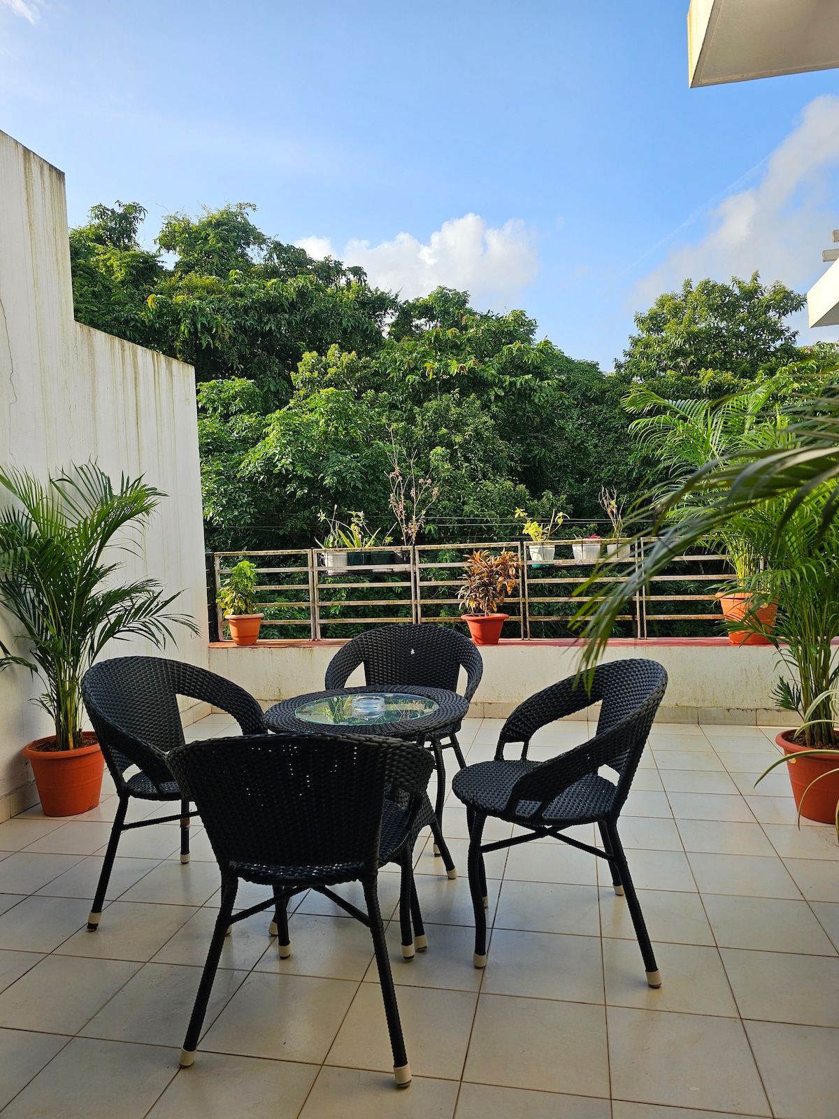 This tastefully decorated Studio Villa nestled in Cavelossim features a large living room with a double bed and a kitchen. The studio room is outfitted with all the appliances you need including a fridge, TV, microwave and air-conditioning with back up power. A cozy sit-out is also there outside to enjoy your evening coffee with a book. There are sun beds on the lawn for endless reading and sunbathing. We have 2 swimming pools in the community that you can use.