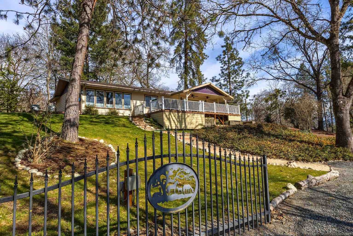 Cette maison merveilleusement accueillante souhaite vous accueillir, vous et votre famille, pour vous détendre et profiter de la compagnie de l'autre ! Vous aurez de l'espace pour vous promener en pleine nature et un morceau de la belle Rogue Valley. Cette propriété est boisée avec son propre sentier naturel miniature le long d'Alder Creek afin que vous profitiez de promenades tôt le matin avec les oiseaux chanteurs. * Une note sur la région ; elle est sujette à d'éventuelles coupures de courant quand il fait très chaud et/ou venteux en raison de la possibilité de feux de forêt.