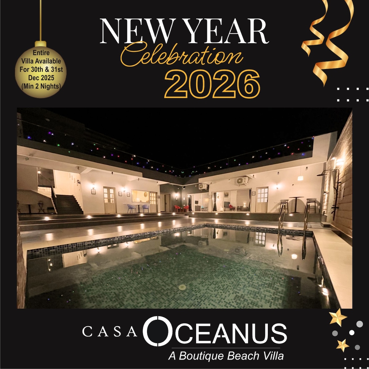 Casa Oceanus - Pool View Room 2 A Well equipped Spacious Room, Large Sea Facing Balconies, Sunlit Rooms, Luxurious Bathroom With Bath Tub With A Sea Facing Bay Window, Open To Sky Courtyard and Pool View. Ideal for Work Or vacation