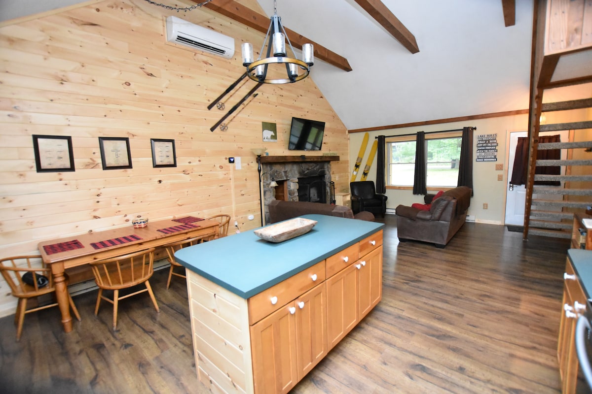 Ce chalet confortable est au bord du lac, à distance de marche des pistes de ski !! À quelques minutes en voiture de nombreux restaurants et cafés, lieux de vie nocturne, activités remplies d'aventure, magasins, films et golf. Les voyageurs auront accès à un kayak, un canoë, un barbecue au charbon de bois, une table de pique-nique (dans la zone de stockage) et un foyer. À l'intérieur, la maison est confortable, des jeux de société et des puzzles sont disponibles. La chambre familiale dispose d'une nouvelle télévision de 42 pouces, la chambre principale dispose également d'une télévision, une connexion Wi-Fi est fournie.