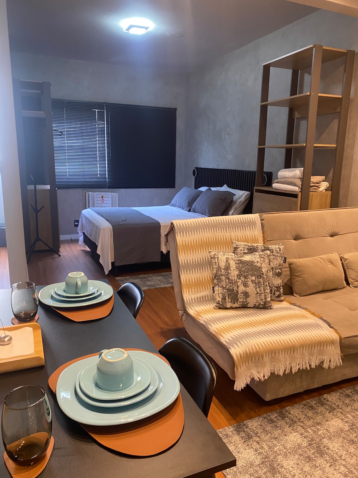 Notre loft est extrêmement neuf, moderne, fonctionnel, très confortable et bien équipé ! Nous sommes à 250 mètres du centre de Blumenau, à 3 km de Vila Germânica , à 55 km de Beto Carreiro, à 29 km de Pomerode, à 54 km de l'aéroport de Navegantes, dans un excellent emplacement, très stratégique, avec tout ce dont vous avez besoin autour du marché, des restaurants, des bars, des pharmacies, des magasins, des hôpitaux, etc. Immeuble avec ascenseur et place de parking !