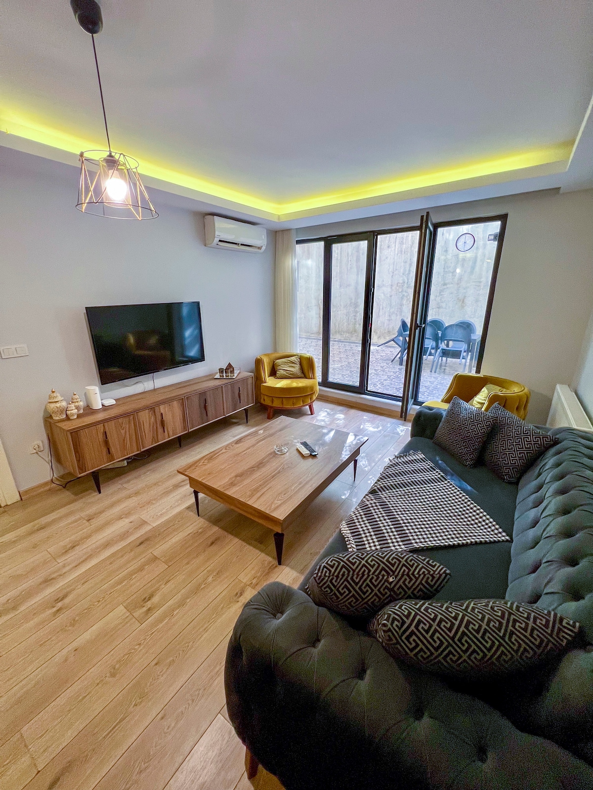 Experience the vibrant heart of Istanbul with a stay in this charming Airbnb flat located on Mis Street, a lively street with restaurants and bars just a few meters away from the famous Istiklal Street in Taksim. This cozy one bedroom flat features a private terrace that's perfect for enjoying the warm Turkish sun. Also a comfortable living room with AC, a kitchen with a mini fridge, a washing machine, coffee machine, and a barbeque on the terrace, as well as a Smart TV for your entertainment.