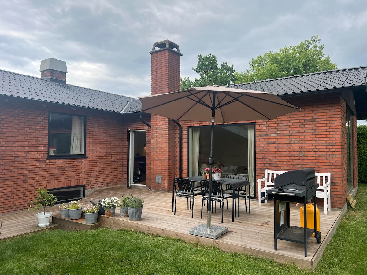 Maison nordique paisible, ensoleillée et confortable de 88 m2 sur un emplacement classique à 12 minutes du centre-ville et à distance de marche de la mer, du lac, des bois et aussi de superbes magasins. Situé dans une rue colorée de maison à l'ancienne à 30 mètres de la gare la plus bien desservie. Idéal pour les couples et les autres personnes qui aiment entendre les oiseaux gazouiller le matin, un court voyage au centre-ville de Copenhague l'après-midi et se détendre dans le front de mer à la mode de Hellerup le soir. N'hésitez pas à me contacter pour connaître le prix et la disponibilité.