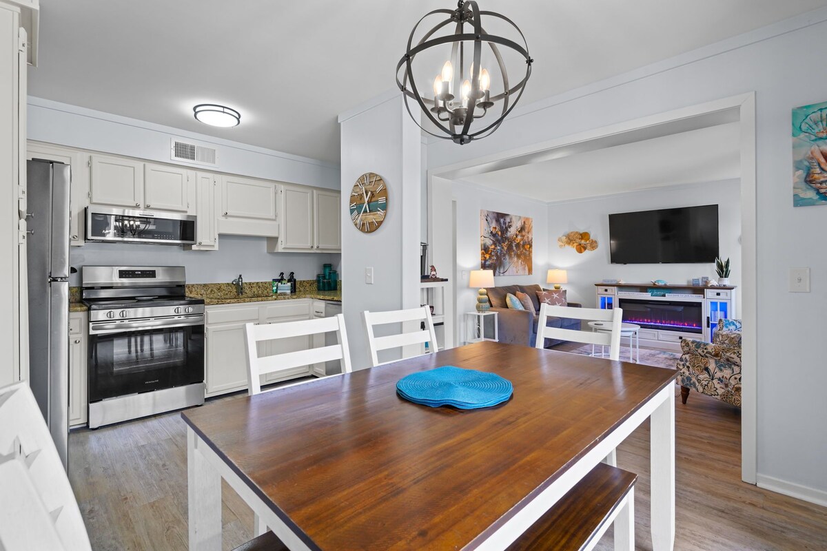 The perfect pet friendly family getaway for someone wanting peaceful/ beautiful surroundings, but wants access to all the action. Ground level apart. separate LR, queen BR, full bath, fully stocked kitchenette, microwave, fridge, 2 burner stove, convection oven/air fryer TV, AC/heat, wifi. Private parking. Use of the fire pits, pizza oven, grills, kayaks, gym and bikes. The beach is just a short 3 mile drive. Boat landing is just down the road, bring your boat and park it in driveway.