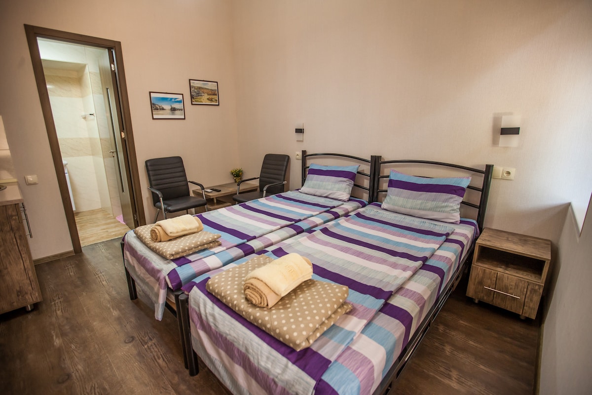 Notre chambre est située dans le vieux quartier de la ville, dans la cour «italienne», mais a une sortie séparée à la rue,qui offre une belle vue sur le centre-ville et le funiculaire. De là, vous commencerez votre chemin à travers toutes les attractions,d'autant plus que l'une des principales, la cathédrale de la Sainte-Trinité est à 3 minutes. La chambre elle-même avec de nouvelles rénovations et des meubles, a tout ce dont vous avez besoin pour un séjour confortable. Nous accueillerons les voyageurs et vous aiderons à naviguer dans un nouvel environnement.