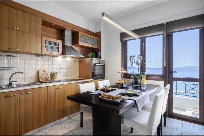 Appartement indépendant, dans une maison moderne au cœur du village de Pylos. Très belle vue sur la baie de NAVARINO depuis la terrasse de 4mX8m, piscine de 3m X 3m.(Non sécurisée) L’appartement construit en 2022, tout le confort, double vitrage, climatisation, ventilation mécanique, wc japonnais. Commerces et place principale à 10 mn à pieds. Baignade dans la magnifique baie de Pylos à 15mn à pieds. Nombreuses plages à moins de 30mn en voiture. Golf international de NAVARINO à 20 mn.